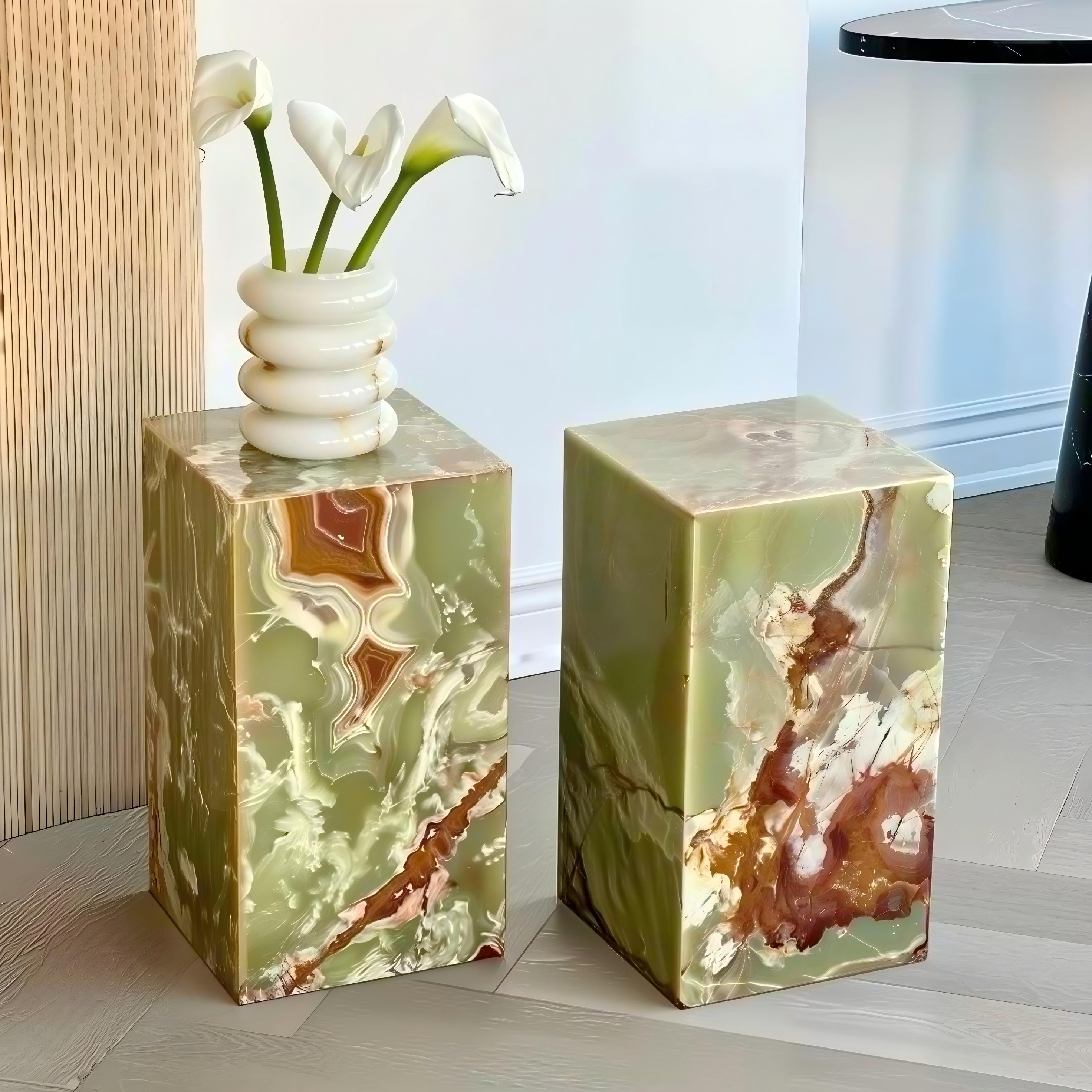 Handcrafted Pink Onyx Plinth Coffee Table: Italy minimalism
