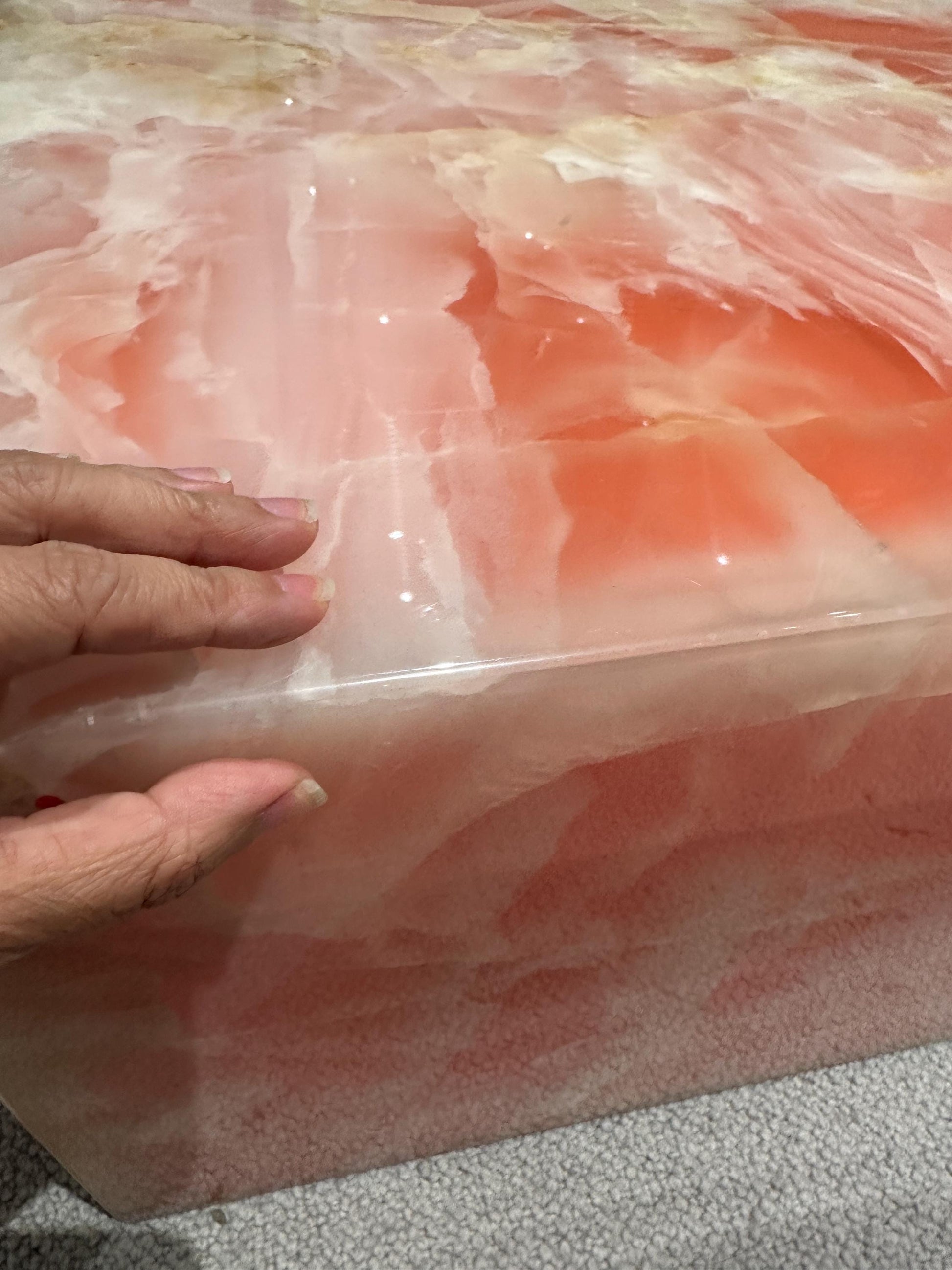 Handcrafted Pink Onyx Plinth Coffee Table: Italy minimalism